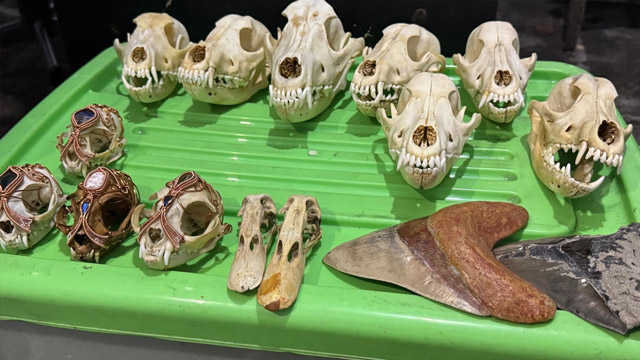 Selain itu, tim Gakkum juga menemukan barang bukti lain. Di antaranya paruh rangkong, tengkorak beruang dan babi rusa, kuku beruang, gigi ikan hiu, dan tengkorak musang.