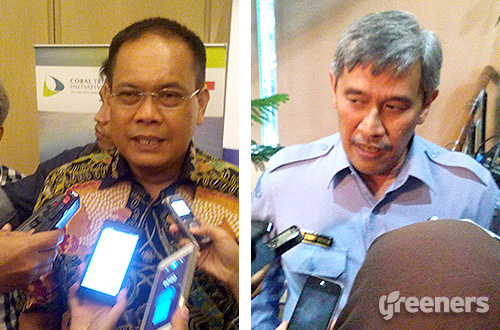 (kiri-kanan) Direktur Jenderal Kelautan Pesisir dan Pulau-Pulau Kecil (KP3K), Kementerian Kelautan dan Perikanan (KKP) Sudirman Saad dan Sekretaris Jenderal KKP Sjarief Widjaja. Foto: greeners.co/Danny Kosasih