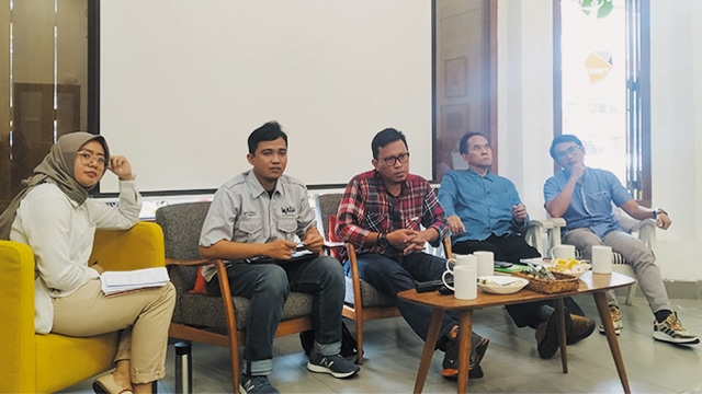 (Kiri ke Kanan) Linda Rosalina, Transformasi untuk Keadilan (TuK) Indonesia, M. Hairul Sobri, Wahana Lingkungan Hidup Indonesia (WALHI) Sumatera Selatan, Dimas N. Hartono, WALHI Kalimantan Tengah, Prof. Hariadi Kartodihardjo, Guru Besar Kebijakan Kehutanan Institut Pertanian Bogor, Okto Yugo Setyo, Wakil Koordinator Jikalahari Foto: www.greeners.co/Dewi Purningsih