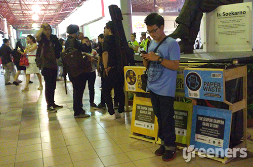 Salah satu tempat sampah yang disediakan project “Less Waste More Jazz” untuk membuang sampah makanan (food waste) dari pengunjung. Proyek ini diselenggarakan selama berlangsungnya Java Jazz Festival 2015, tanggal 6-8 Marte 2015. Foto: greeners.co/Danny Kosasih
