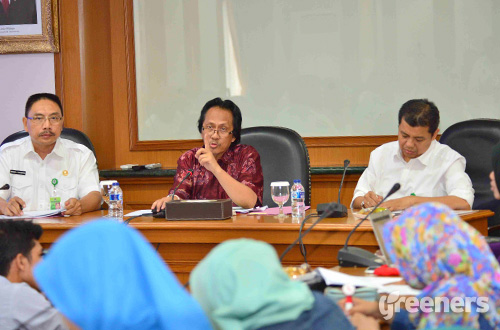 Direktur Jenderal Planologi Kehutanan dan Tata Lingkungan Kementerian LHK, Prof. Dr. San Afri Awang (mengenakan kemeja batik) menyampaikan terdapat penambahan luas areal moratorium seluas 191.706 hektare. Foto: greeners.co/Danny Kosasih