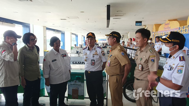 Dirjen PSLB3 KLHK Rosa Vivien Ratnawati ( kedua kiri belakang) mendampingi Menteri LHK saat meninjau Terminal Pulo Gebang. Foto: Greeners/Ramadani Wahyu