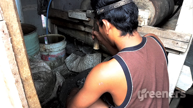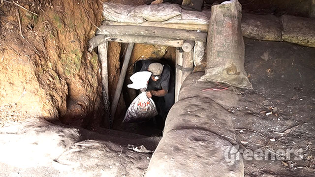 Tim Greeners mengikuti perjalanan menantang ini hingga ke lubang tambang. Sisa hujan kemarin yang berimbas pada beceknya jalanan tak mematahkan semangat tim untuk meneropong aktivitas penambang. Bayangkan saja, lubang tambang hanya seluas 2 kali 1,5 meter hanya beratapkan terpal kumuh berwarna biru.