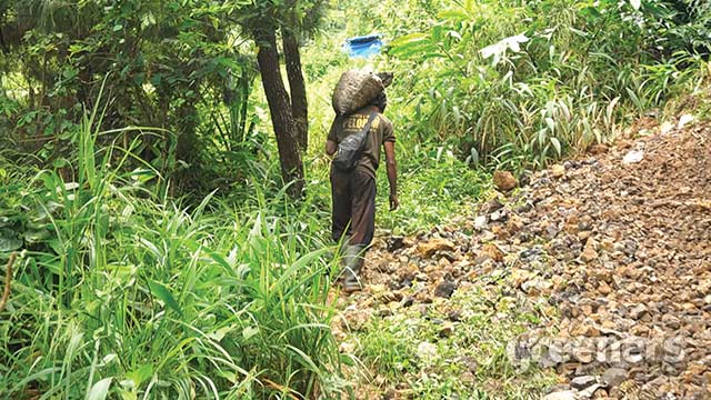 Pagi itu jalanan berdebu dan menanjak mengiringi perjalanan tim. Untuk mencapai lokasi ini, tim Greeners menempuh waktu berjam-jam dari pusat keramaian kabupaten tersebut. Jalanan penuh dengan pecahan batu dan kerikil tajam. Debu mengepul. Kamis (10/3), pukul 08.00 WIB adalah waktu yang tepat bagi para penambang untuk berangkat ke lokasi tambang. Mereka menuju ke areal bukit. Lokasi bukit ini berada di kawasan hutan lindung.