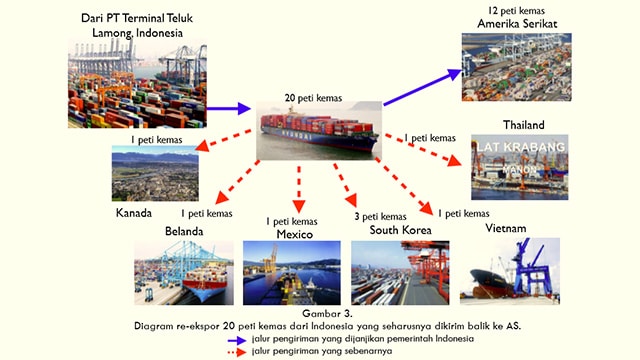 BAN menemukan bahwa 58 peti kemas yang seharusnya dikembalikan ke Amerika Serikat, 38 diantaranya dialihkan India, tiga ke Korea Selatan, dan satu peti kemas masing-masing ke Thailand, Vietnam, Mexico, Belanda, dan Kanada. Hanya 12 dari 58 peti kemas yang benar benar dikembalikan ke Amerika Serikat seperti yang dijanjikan pemerintah Indonesia.