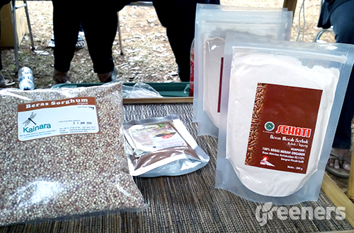 Beberapa produk pangan lokal yang dipamerkan di Festival Desa 2014, diantaranya kopi, beras merah dan beras sorgum. Foto: greeners.co/Danny Kosasih