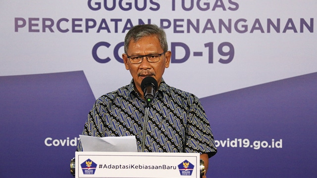 Juru Bicara Pemerintah untuk Penanganan Covid-19, Achmad Yurianto saat memberikan keterang pers di Media Center Gugus Tugas Percepatan Penanganan COVID-19, Graha Badan Nasional Penanggulangan Bencana (BNPB), Jakarta, Minggu (21/06/2020). Foto: Badan Nasional Penanggulangan Bencana (BNPB).