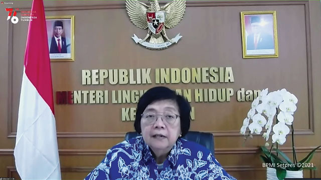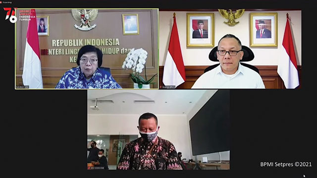 Menteri Lingkungan Hidup dan Kehutanan (LHK) menyampaikan keterangan persnya usai mengikuti rapat terbatas mengenai Pengelolaan Limbah Medis B3 Covid-19, pada Rabu, (28/07/2021). Foto: Biro Pres, Media, dan Informasi (BPMI) Sekretariat Presiden