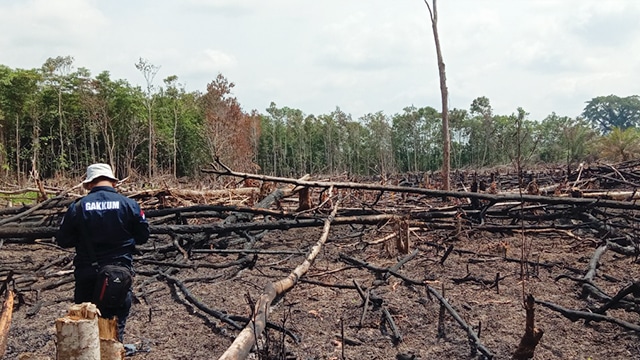Direktorat Jenderal Penegakan Hukum (Ditjen Gakkum) KLHK, menyegel tiga lokasi lahan terbakar di areal konsesi PT. MSL Kabupaten Mempawah, PT. TAS dan PT. SPAS di Kabupaten Ketapang, Kalimantan Barat, Selasa, 13 Agustus 2019. Foto: Kementerian Lingkungan Hidup dan Kehutanan (KLHK).