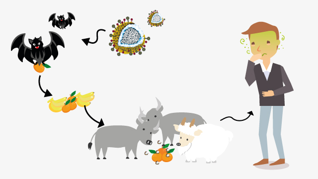 Menurut Cahyo, media penularan virus dari satwa ke manusia terjadi melalui berbagai perantara. Urin atau air liur hewan, misalnya, mampu mencemari makanan termasuk mengonsumsi hewan secara langsung. Ia mencontohkan penyakit SARS, Nipah, Hendra ditemukan di kelelawar, meskipun beberapa virus korona juga ditemukan di trenggiling. Ia mengatakan secara alami satwa liar menyimpan berbagai jenis virus, bakteri, dan mikroorganisme. “Jadi sebenarnya bukan hanya kelelawar saja,” ucap Cahyo.