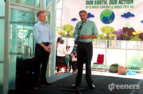 (kiri ke kanan) Duta Besar Uni Eropa (UE) untuk Indonesia Vincent Guerend dan Duta Besar Inggris untuk Indonesia Moazzam Malik saat menghadiri konser perubahan iklim di Rumah Kaca, Taman Menteng, Jakarta, Minggu (06/12). Foto: greeners.co/Danny Kosasih
