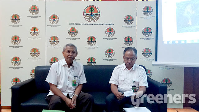 Direktur Jenderal Pengendalian Daerah Aliras Sungai dan Hutan Lindung Hilman Nugroho (Kiri) ,Kabiro Humas KLHK Djati Witjaksono (kanan) , Foto : greeners.co