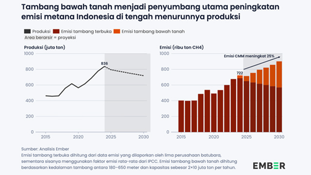 Sementara itu, dampak lingkungan dari ekspansi batu bara juga signifikan. Ember memperkirakan emisi metana tambang batu bara (CMM) pada tahun 2024 mencapai 722 kiloton (kt) metana. Jumlah tersebut lebih dari empat kali lipat angka resmi pemerintah. Penyebab perbedaan ini adalah penggunaan faktor emisi yang tidak tepat dan juga tidak memperhitungkan emisi dari tambang bawah tanah.