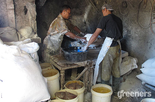 (Di bawah ini foto-foto pembuatan bakso di sebuah pabrik bakso yang tidak memenuhi standar kesehatan)