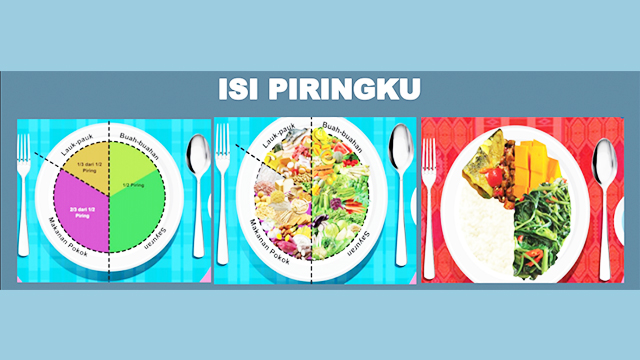 Kementerian Kesehatan mengampanyekan Isi Piringku untuk mengedukasi masyarakat mengenai komposisi makanan dengan gizi seimbang. Sumber: Kemenkes RI