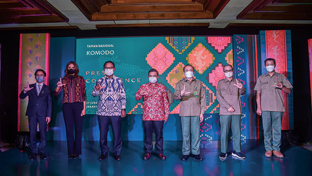 Wakil Menteri LHK Alue Dohong bersama sejumlah narasumber berfoto bersama usai konferensi pers terkait TN Komodo. Foto: KLHK