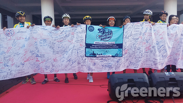 Tidak hanya membawa pesan lingkungan, tim Jelajah Bhumi juga membawa spanduk yang berisikan tanda tangan dari orang-orang untuk mendukung pembangunan Kebun Raya Mangrove pertama di dunia di Surabaya.