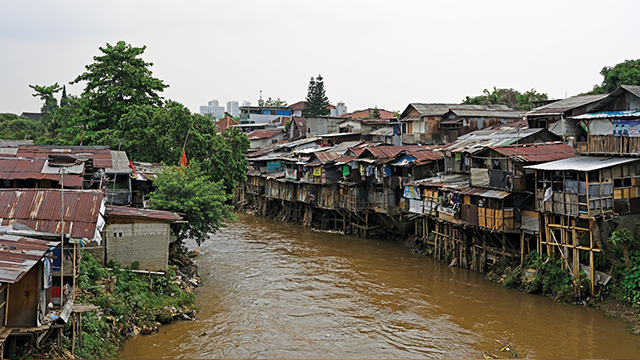 Penampakan permukiman kumuh warga di sepanjang daerah aliran sungai di perkotaan. Foto: shutterstock
