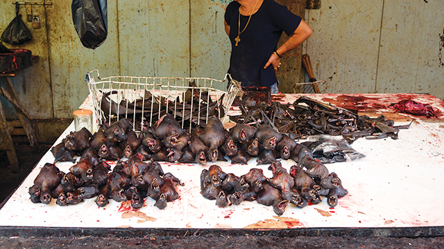 Pasar tradisional di Tomohon, Sulawesi Utara menjual daging kelelawar, babi, sapi, dan berbagai hewan liar lainnya. Foto: shutterstock.com