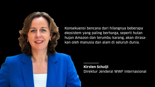 “Konsekuensi bencana dari hilangnya beberapa ekosistem yang paling berharga, seperti hutan hujan Amazon dan terumbu karang, akan dirasakan oleh manusia dan alam di seluruh dunia,” ungkap Kirsten lewat keterangan tertulisnya, Kamis (10/10).