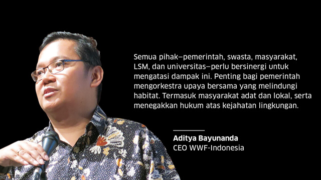 “Semua pihak—pemerintah, swasta, masyarakat, LSM, dan universitas—perlu bersinergi untuk mengatasi dampak ini. Penting bagi pemerintah mengorkestra upaya bersama yang melindungi habitat. Termasuk masyarakat adat dan lokal, serta menegakkan hukum atas kejahatan lingkungan,” ucapnya.