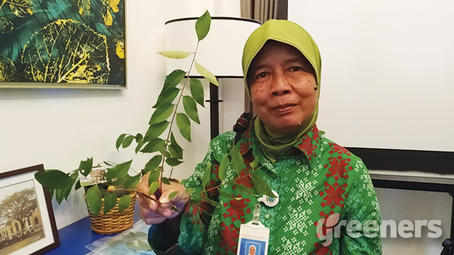 Inggit Puji Astuti, researcher at the LIPI’s Research Center of Plants Conservation and Botanical Garden, showed Murraya cyclopensis, a new type plant from genus murraya. Photo: greeners.co/Dewi Purningsih