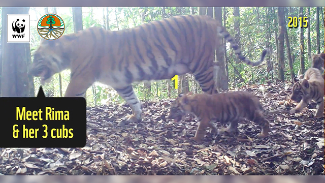 From official video to Greeners, a female Sumatran tiger, Rima, can be seen with her three cubs walking in the forest. The timestamp of the video is 2015. The next video shows Rima walked with four cubs in a video dated in the year of 2017.