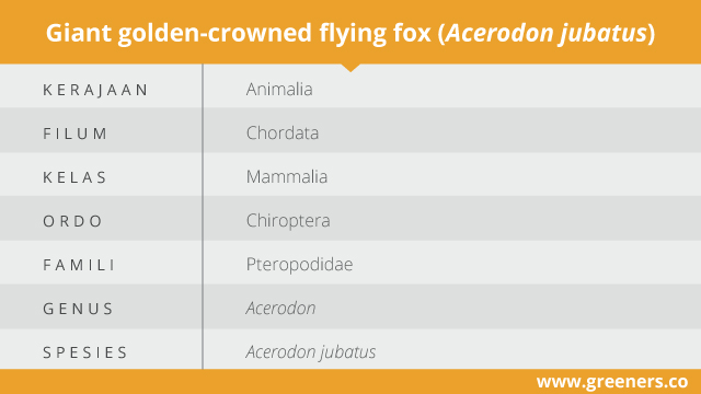 Kelelawar raksasa mahkota emas atau Acerodon jubatus merupakan mamalia terbang endemik dari Filipina. Berasal dari Famili Pteropodidae yang terdiri dari sekitar 180 spesies. Berkerabat dengan Pteropus vampyrus, Balionycteris maculata, Cynopterus sphinx, Rousettus madagascariensis, dan masih banyak lagi.