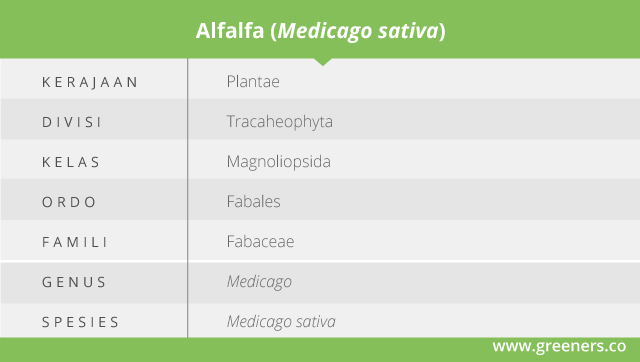 Tanaman alfalfa atau lucerne dikenal juga dengan nama ilmiah Medicago sativa. Berasal dari famili Fabaceae atau leguminosae, berkerabat dengan kedelai (Glycine max), kacang polong (Pisum sativum), kacang tanah (Arachis hypogaea), dan lainnya.