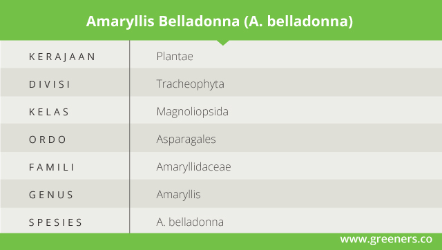 Nama bunga amarilis memang sedang naik daun saat ini. Selain mempunyai tampilan indah, tanaman hias tersebut juga sering dimanfaatkan untuk kebutuhan obat. Dari sekian banyak spesiesnya, Amaryllis belladonna adalah salah satu yang paling populer di masyarakat.