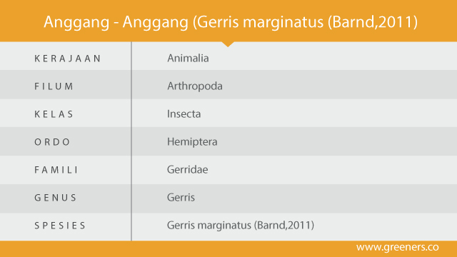Anggang-anggang berasal dari family Gerridae, merupakan serangga yang biasa ditemukan di perairan tenang seperti kolam, sungai atau danau. Namun ada lima jenis (dari marga Halobates) yang diketahui hidup di permukaan samudera.