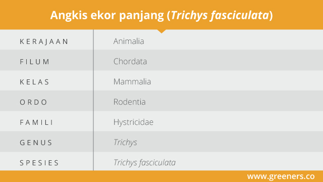 Angkis ekor panjang adalah satu-satunya hewan dari genus Trichys. Mereka aktif pada malam hari dan istirahat (tidur) di dalam liang pada siang hari.