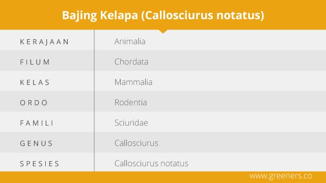 Bajing kelapa termasuk ordo Rodentia sedangkan tupai berasal dari ordo Scandentia. Karena corak warnanya mirip dengan habitat yang sama, keduanya sering dianggap sejenis oleh masyarakat.