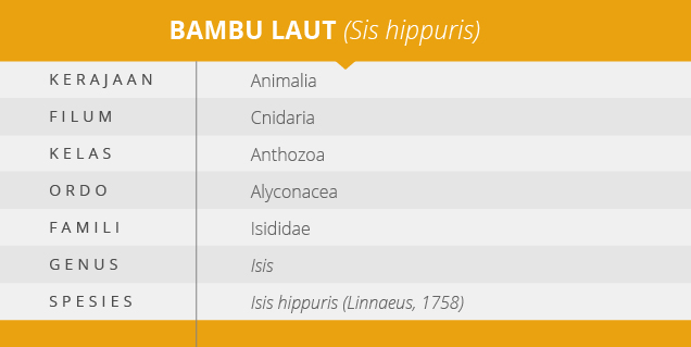Berdasarkan artikel yang dikutip pada laman kkji.kp3k.kkp.go.id, bambu laut (Isis hippuris) adalah salah satu jenis oktokoral yang hidup diperairan tropis Indo – Pasifik. Oktokoral, merupakan biota penyusun terumbu karang kedua sesudah karang batu. Bentuk pada oktokoral pada umumnya seperti pohon, muncul dari substrat/melekat di dasar perairan yang keras. Fauna ini termasuk kelompok gorgonia dengan tekstur tubuh kokoh karena disangga oleh kerangka yang keras.