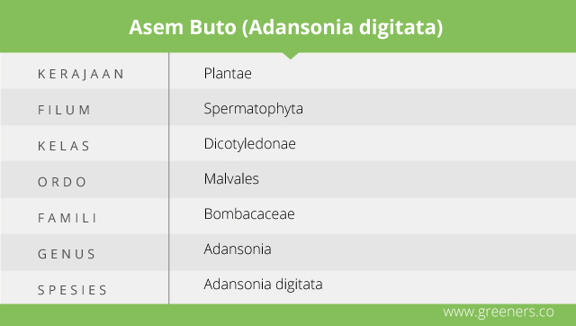 Pohon Baobab Afrika atau Adansonia digitata dalam penamaan lokal disebut juga sebagai Asem Buto. Flora ini merupakan salah satu jenis pohon tertua dan terbesar dari keluarga Angiospermae. Dengan bentuk fisik terbesar di dunia, pohon Baobab diibaratkan seperti brokoli raksasa.