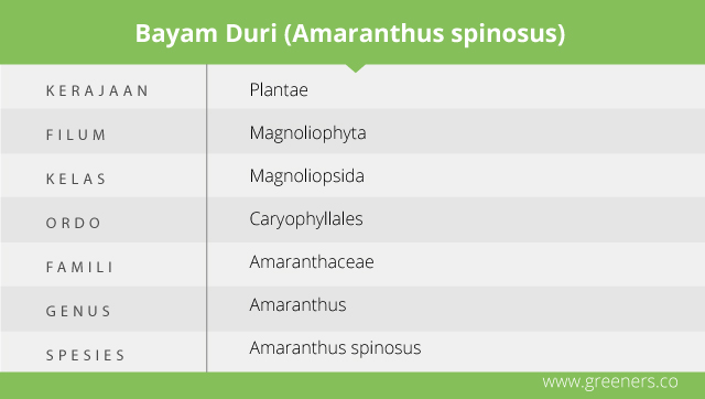 Bayam termasuk tanaman gulma yang tumbuh liar. Begitu pula dengan bayam duri. Walaupun memiliki cita rasa yang sama, bayam duri kurang populer dibanding bayam biasa. Tumbuhan bayam duri (Amaranthus spinosus L.) biasa didapati di pekarangan rumah, di semak sepanjang jalan kampung, di ladang, serta di pinggir sungai. Walaupun tidak sepopuler bayam, bayam duri memiliki panggilan kesayangan di berbagai daerah di tanah air.
