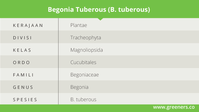 Kelompok Begonia tuberous dikenal juga sebagai Tuberhybrida atau Tuberosa. Ia terdiri dari 1.000 spesies tanaman, yang ahli gabungkan dalam genus Begonia serta famili Begoniaceae.