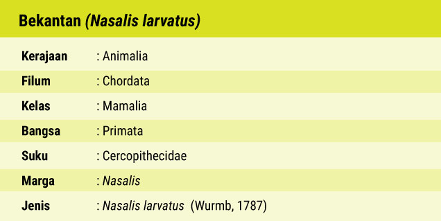 Salah satu taman hiburan yang cukup besar dan populer di Indonesia memakai satwa ini sebagai maskot. Ya, satwa yang dimaksud adalah bekantan. Bekantan (Nasalis larvatus) atau Proboscis monkey merupakan primata dengan ciri khas memiliki hidung yang panjang dan besar. Tidak hanya bentuk hidungnya yang khas, satwa ini juga pandai menyelam untuk melewati sungai. Ini dikarenakan bekantan memiliki selaput di sela-sela jari kakinya untuk memudahkannya berenang.