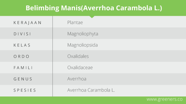 Belimbing manis (Averrhoa carambola L.) atau dalam bahasa Inggris dikenal dengan sebutan Carambola/Star Fruit, termasuk jenis buah tropis yang sudah lama dikenal dan ditanam di Indonesia. Seorang botani Soviet bernama Nikolai Ivanovich Vavilovanaman memastikan tanaman belimbing manis berasal dari India. Kini, tanaman ini menyebar luas ke berbagai negara yang beriklim tropis terutama di kawasan Asia (Rukmana, 1996).