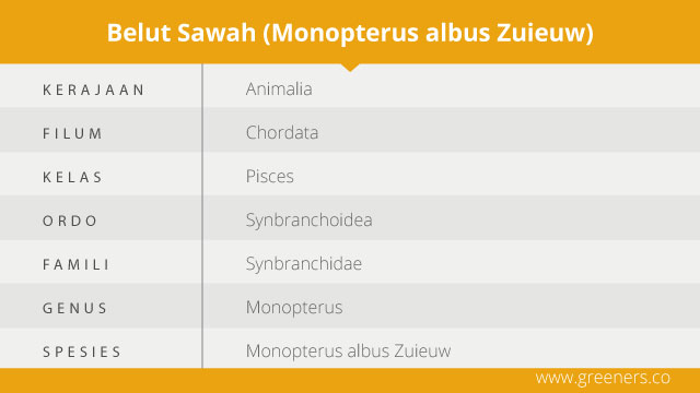 Karena bentuknya yang seperti ular, maka tidak banyak orang yang menyangka bahwa hewan ini berasal dari keluarga ikan. Belut sawah tergolong dalam famili Synbranchidae yaitu ikan-ikan yang tidak mempunyai sirip dan sisik atau rongga untuk bergerak. Kulitnya licin mengeluarkan lendir.