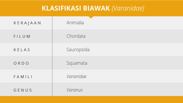Biawak (famili Varanidae) adalah kadal yang dianggap sebagai salah satu jenis kadal terbesar di dunia. Sebanyak 53 spesies teridentifikasi di seluruh dunia. Adapun, lebih dari 40% seluruh jenis biawak di dunia terdapat di wilayah Indonesia dan sisanya ditemukan di Asia, Amerika, Australia juga Afrika.