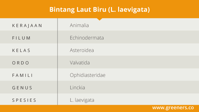 Seperti namanya, bintang laut biru atau blue Linckia tergabung dalam famili Ophidiasteridae dan genus Linckia. Ia berkerabat dengan Linckia multifora, yang memiliki warna kemerahan.