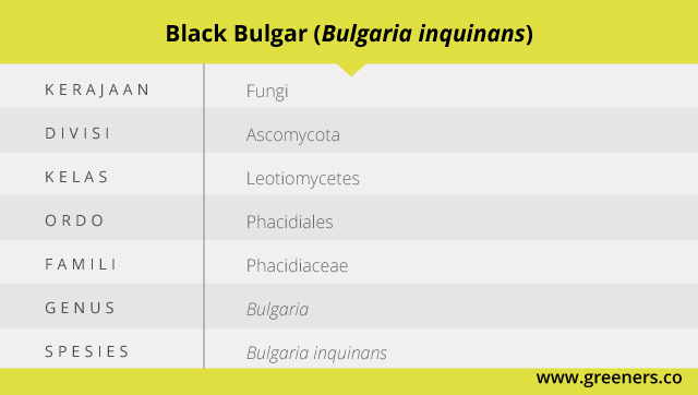 Jamur black bulgar, bachelor’s buttons atau rubber buttons dikenal juga dengan nama ilmiah Bulgaria inquinans, berasal dari famili Bulgariaceae. Di Amerika Serikat, jamur ini disebut sebagai Black Jelly Drops atau Poor Man’s Licorice karena penampilanya yang terlihat seperti akar manis atau permen karet hitam. Meskipun begitu, jamur ini tidak dapat dimakan dan mengandung racun.