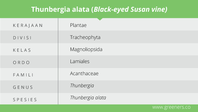 Penamaan genus Thunbergia diberikan oleh Carl Peter Thunberg, seorang dokter Swedia yang belajar di bawah Carl Linnaeus. Memiliki nama sinonim Endomelas alata (Bojer ex Sims) Raf serta berasal dari Afrika timur.