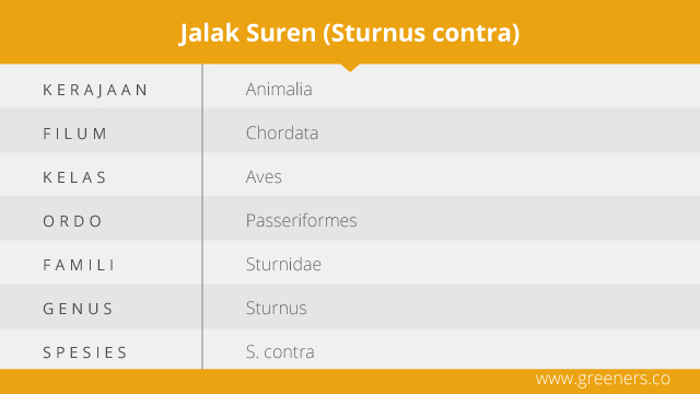 Jalak suren termasuk ke dalam genus Sturnus dan Sturnopastor. Namun hasil studi terbaru tidak mendukung penggolongannya ke genus tersebut. Akhirnya spesies ini dikembalikan ke dalam genus yang lebih tua, yakni Gracupica. Spesies jalak suren banyak ditemukan di anak benua India dan Asia Tenggara. Burung-burung ini biasa ditemukan dalam kelompok kecil di kaki lembah dan dataran rendah.