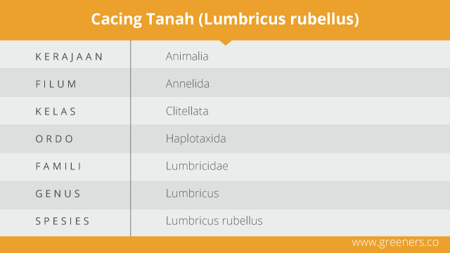 Cacing tanah yang tersebar di seluruh dunia berjumlah sekitar 1.800 spesies. Cacing tanah yang terdapat di Indonesia tergolong ke dalam famili Enchytraeidae, Glassocolicidae, Lumbricidae, Moniligastridae, Megascolicidae. Genus yang pernah ditemukan ialah Enchytraeus, Fridericia, Drawida, Dichogaster, Eudichaster, Pontoscolex, Pheretima, Megascolex, Perionyx dan Allolobophora.
