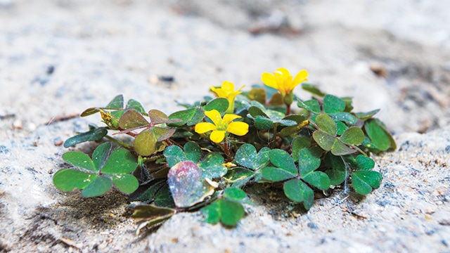 Daun calincing memiliki bunga berukuran kecil tersusun seperti payung yang terdiri dari 2 hingga 8 bunga dalam setiap tangkai. Kelopak bunganya berwarna kuning cerah (Lembaga Biologi Nasional-LIPI, 1978). Tangkai daun dari tanaman ini berukuran kecil dan tumbuh tegak ke atas menyerupai jarum-jarum kecil.