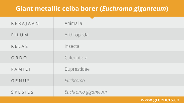 Giant metallic ceiba borer atau Euchroma giganteum merupakan serangga metalik yang berukuran cukup besar. Berasal dari famili Buprestidae yang memiliki ciri khas bertubuh keras dan berbentuk seperti peluru. Saat fase larva sering disebut juga penggerek berkepala datar.