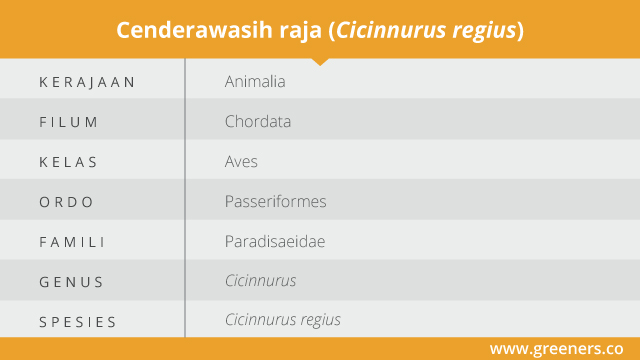 Burung cendrawasih raja atau king bird-of-paradise memiliki nama ilmiah Cicinnurus regius dan berasal dari famili Paradisaeidae. Berkerabat dengan cendrawasih-gagak halmahera (Lycocorax pyrrhopterus), bidadari halmahera (Semioptera wallacii), dan lainnya.