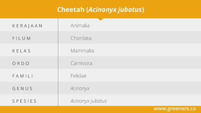 Satwa ini memiliki 4 subspesies di bawahnya, yakni A. j. hecki, A. j. jubatus, A. j. soemmeringii, dan A. j. venaticus. Satwa ini memiliki kemampuan lari yang sangat cepat. Mereka mampu berlari hingga 120 km/jam. Dengan kemampuannya tersebut, cheetah menjadi satwa pelari tercepat di dunia. Uniknya juga, mereka menggunakan ekornya sebagai kemudi ketika sedang berlari. Mereka juga dapat beradaptasi pada suhu yang sangat ekstrem (0-45ºC).